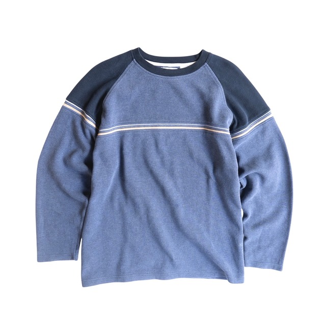 MADE IN USA SIZE L 50% Cotton 50% Polyester 着丈 59cm 身幅 54cm 肩幅・袖丈ラグランスリーブの為、計測不可能 *前面部・右袖一部色褪せあり ※特筆すべきほどの大きなダメージや汚れなどがある場合は掲載しておりますが、使用感や経年変化、細かな傷・ダメージ・汚れなどはあくまでもUSED商品の性質の範疇であることを十分にご理解いただいた上でのご購入をお願いいたします。 ※実物と掲載画像の色味の差異、測定値の若干の誤差はご了承ください。