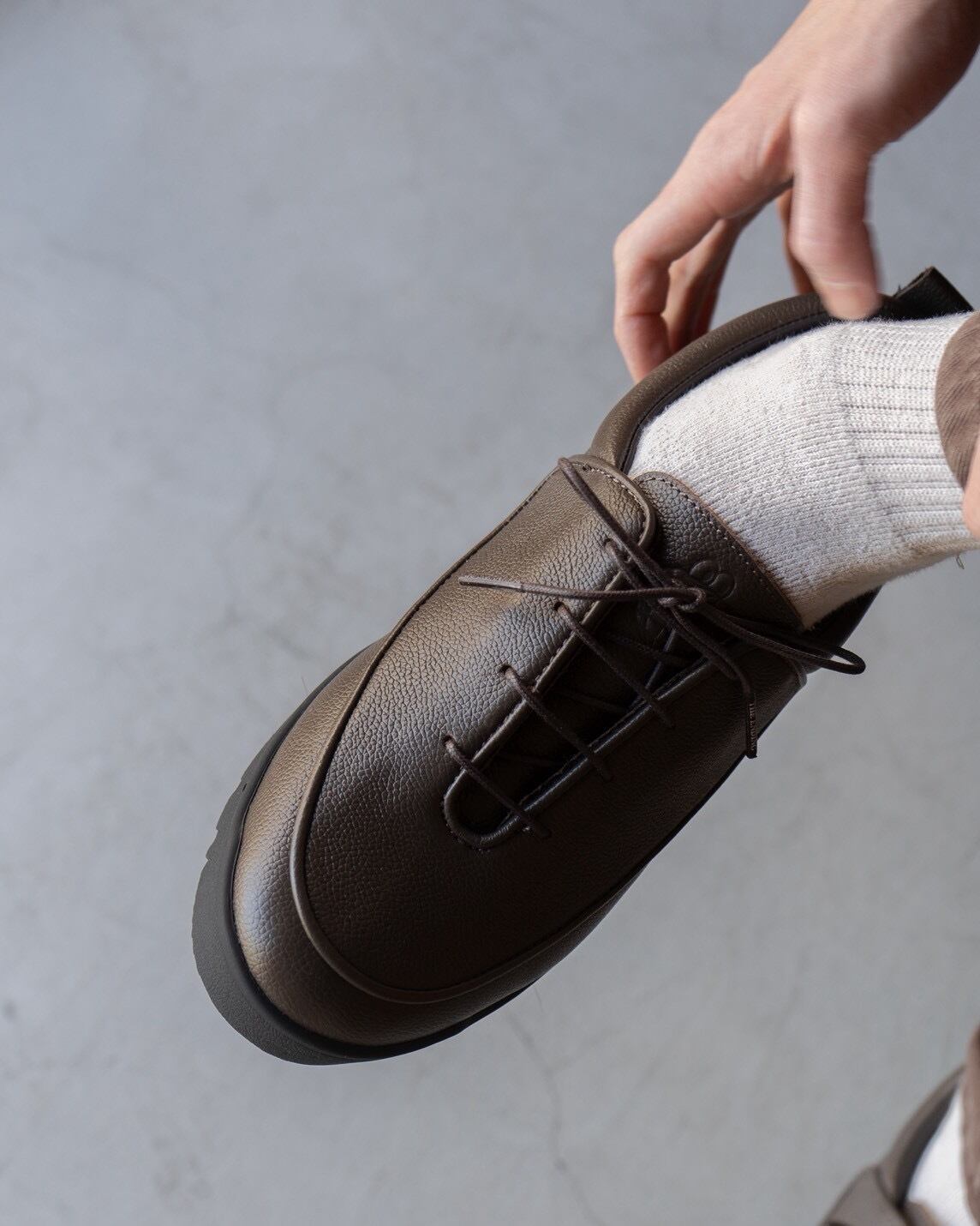 ドレスシューズのような佇まいで、中身は完全にスニーカーの構造。