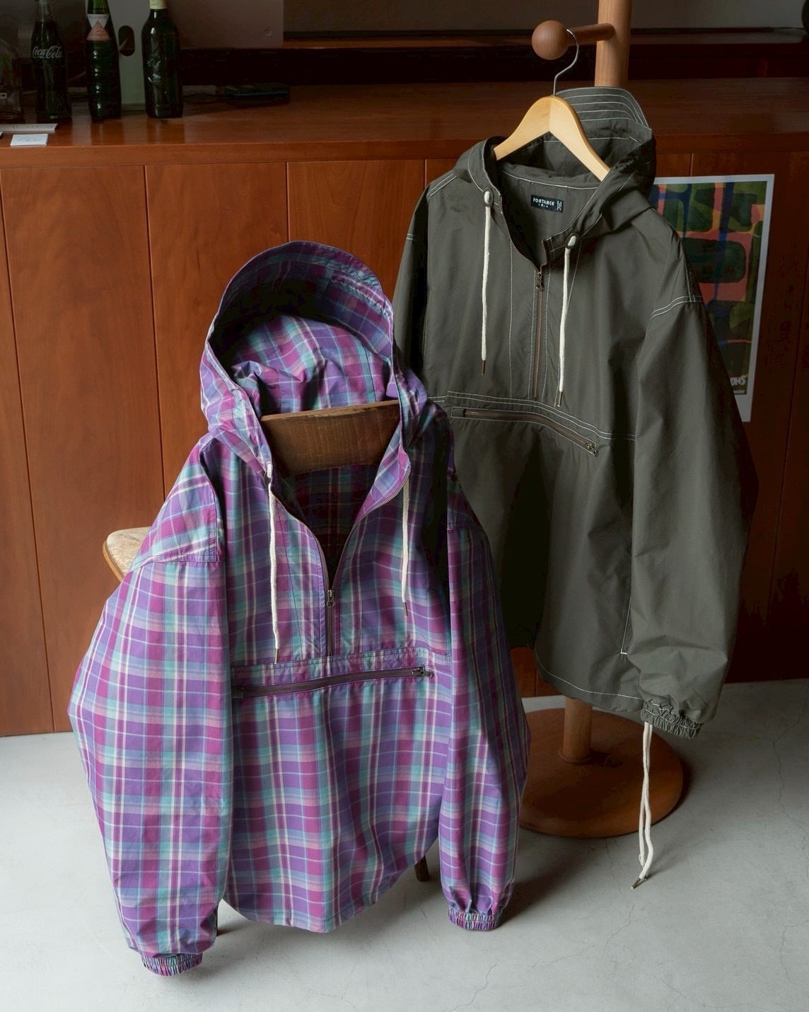 フード、裾部分のドローコードはクラシカルな生成りのコットン丸紐。