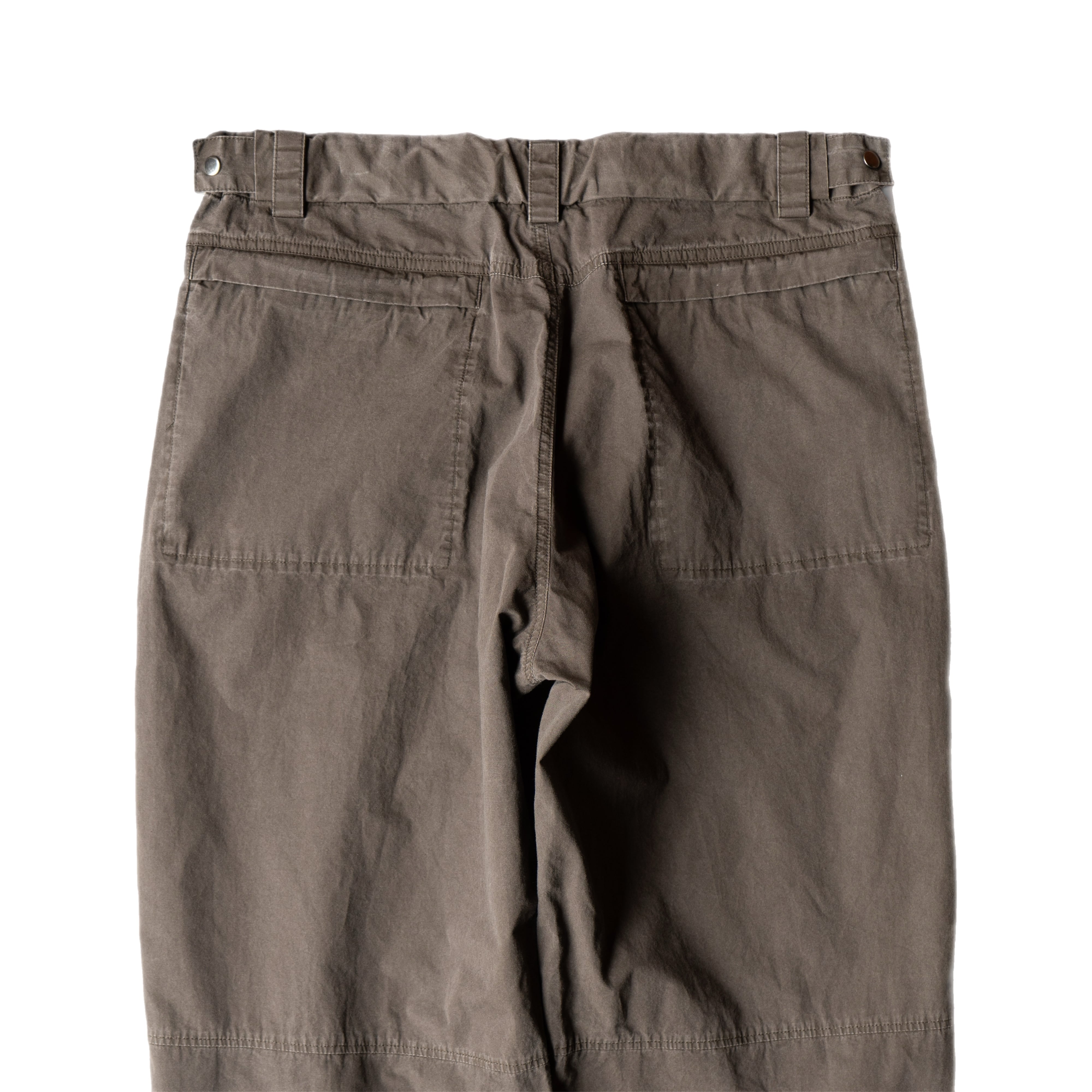 *サルファーダイ(硫化染め)を施したコットンタイプライター生地に、ボールバイオ加工を加えることで、生地本来のハリ感を残しながら、自然なフェードやアタリが表れた風合いに仕上げています。